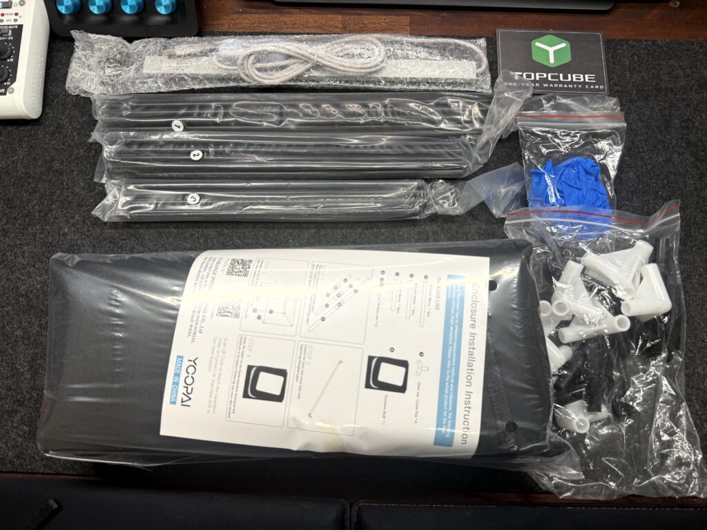 設置後は、フレームの安定性、カバーの密閉性、プリンター操作のしやすさをチェックします。組み立てにかかる時間はおよそ20分で、1人でも簡単に設置可能です。初めてエンクロージャーを使用する方でもスムーズに導入できます。
