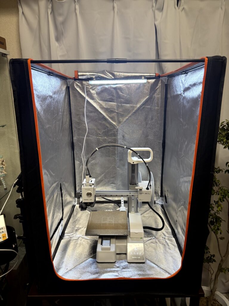 Bambu LabのA1 miniは、コンパクトながら高速・高精度での造形が可能な3Dプリンターです。しかし、どれだけ高性能でも外気温や湿度、空気の流れによって造形品質が左右されることがあります。特にPLAやPETGの造形では、外気温が低いと反りや層剥がれが起こる場合があり、長時間のプリントや夜間の自室での稼働では騒音やフィラメント臭も気になるところです。